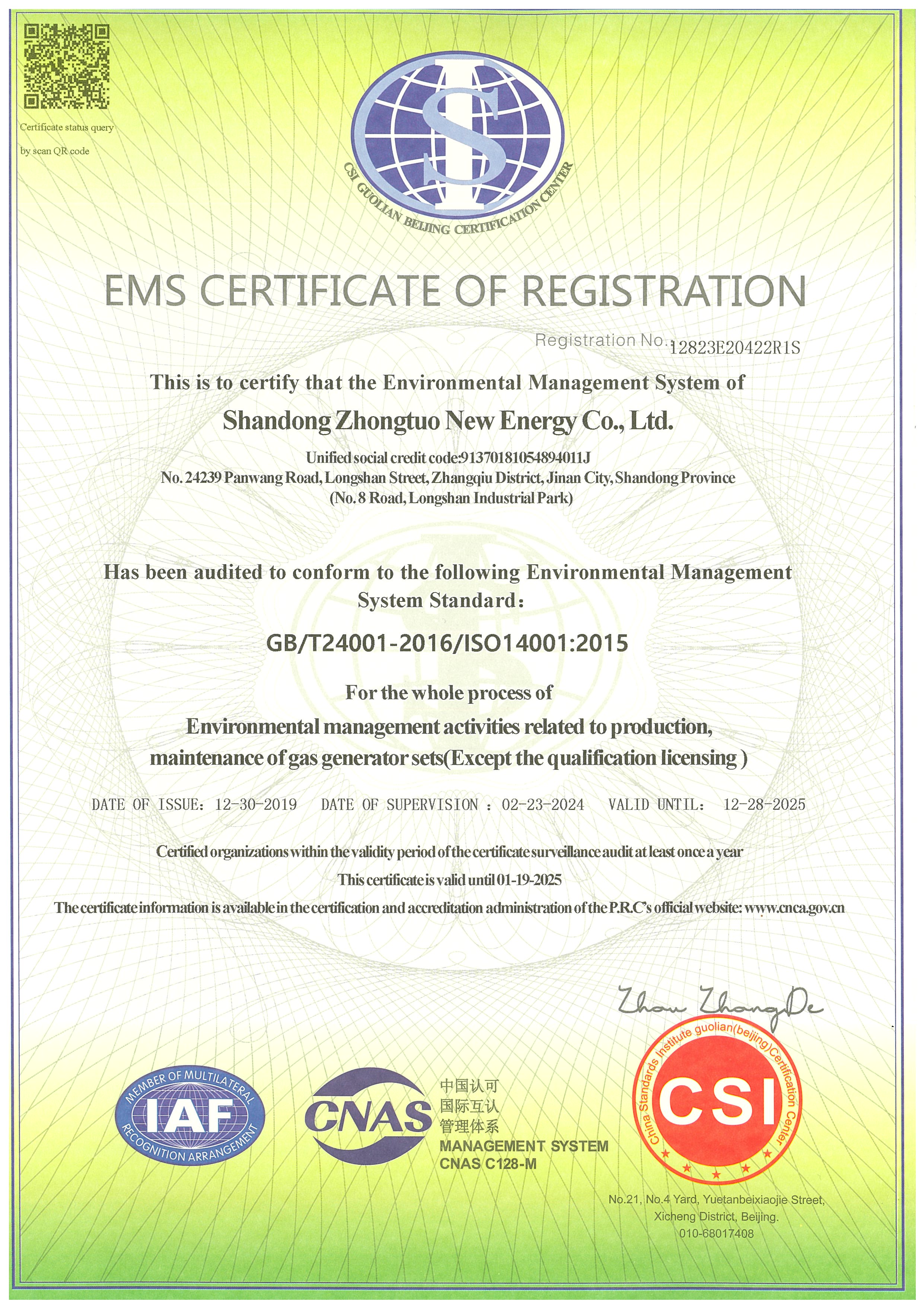 環境管理體系認證證書